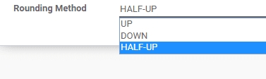 3. HALF-UP: If the fraction part of a value is greater than or equal to 0.5, then round half towards plus infinity. If the fraction part is less than 0.5 then round half towards minus infinity.
