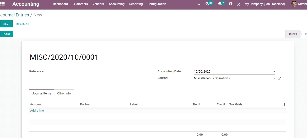 A journal entry will automatically be crafted depending on the invoice. The user can see the journal entry in a few steps. Go to Accounting> Journals>Purchase.