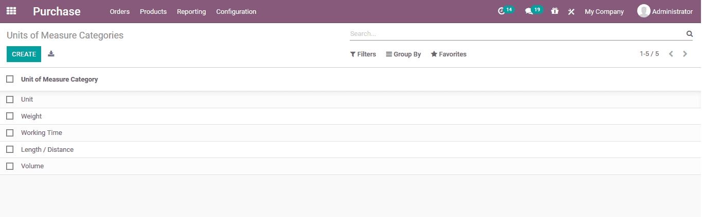 The units of measure categories of operation can be defined based on the user and the company specifications. The respective units of measure category can be defined under the unit of measure categories menu. The menu is accessible through the configuration tab and will list out the respective units of measure categories being defined in the platform.