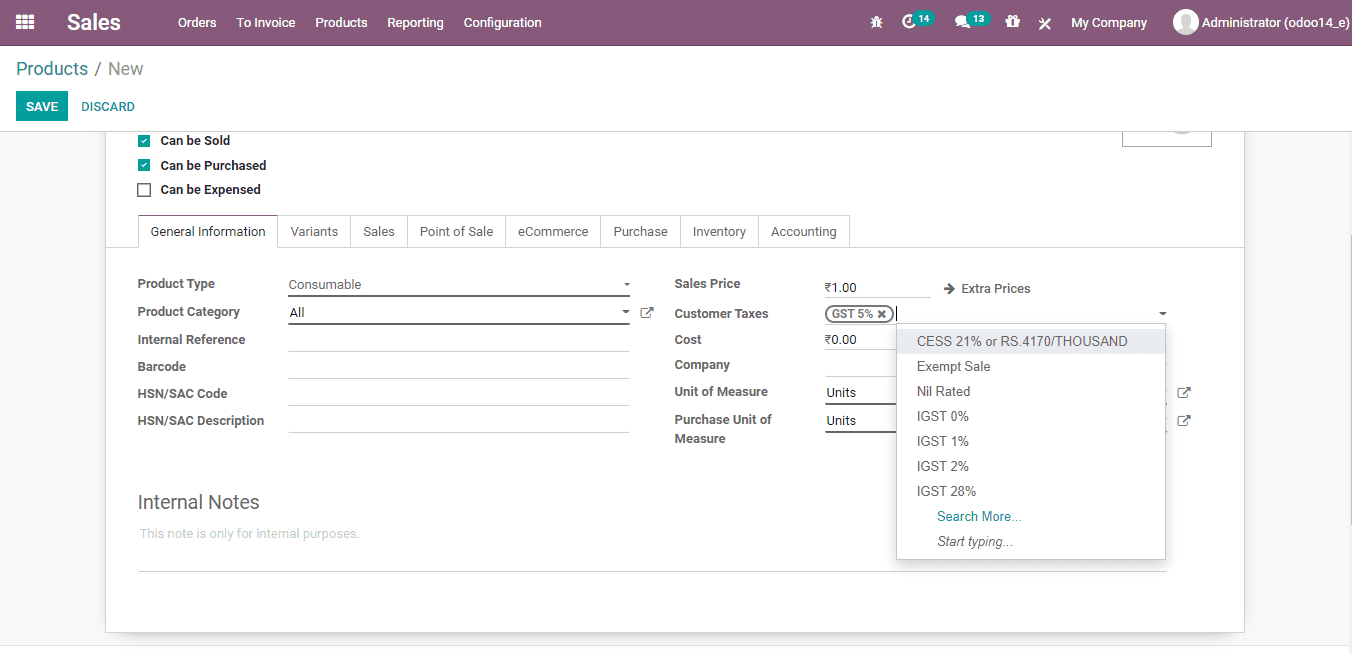 Sales Price: It is the price at which the user sells a product to the customer. Extra prices details can also be added here.