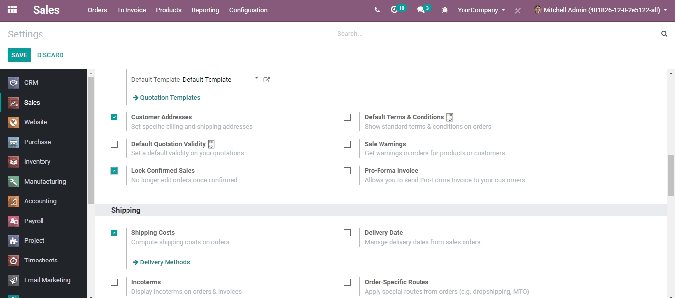 Go to SALES > Configuration > Settings and activate the Pro-Forma Invoice feature.
