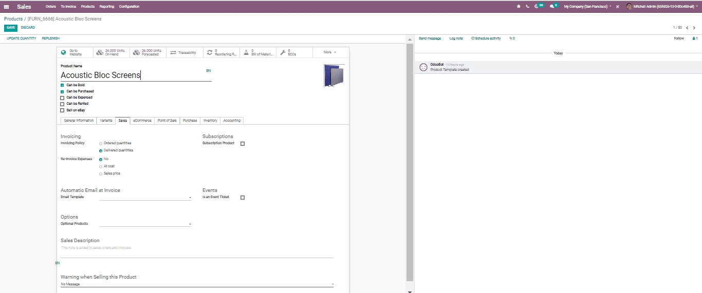 Another option you get under the sales tab on the product page is that you can include a notice or a blocking message.